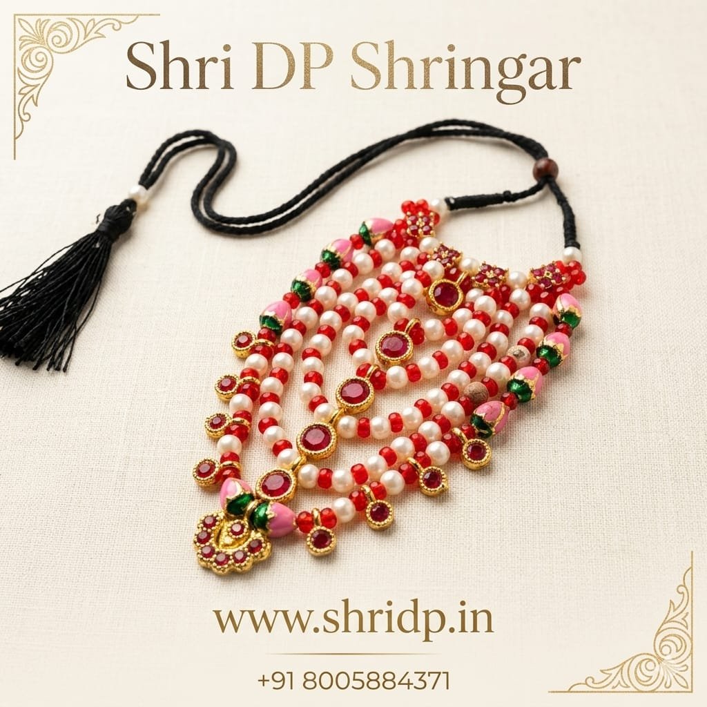 Enhance the divine beauty of your Laddu Gopal ji with our exquisitely designed Kamal Kundan Mala ji, now available in two different sizes and patterns to perfectly suit your deity’s appearance. Crafted with precision and devotion, each mala features sparkling diamond & Beads -like stones set in a high-quality, lightweight design that adds a regal and radiant touch to your Thakur ji’s shringar.