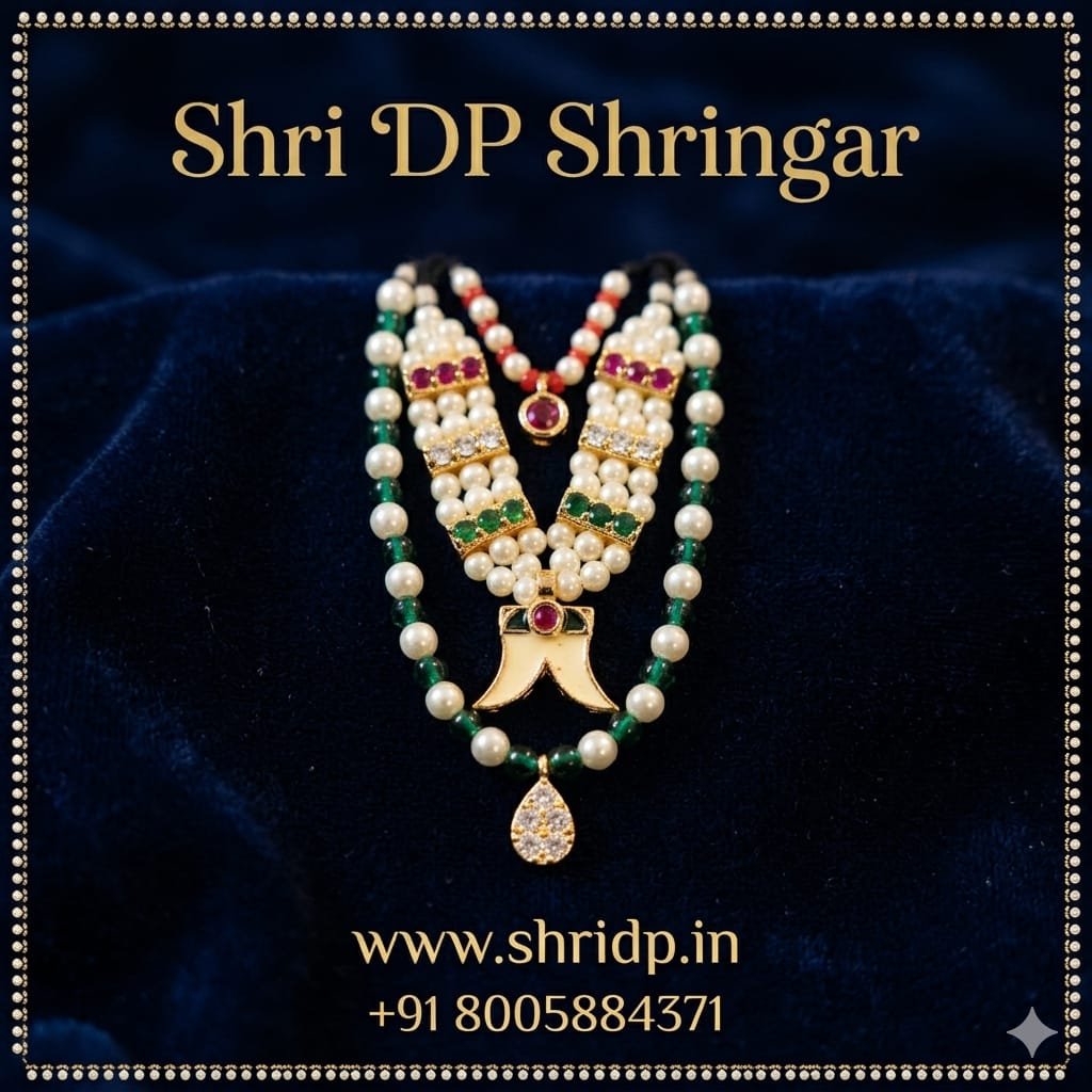 Enhance the divine beauty of your Laddu Gopal ji with our exquisitely designed Wagh Nakh Mala ji Set. Crafted with precision and devotion, each mala features sparkling diamond & Beads -like stones set in a high-quality, lightweight design that adds a regal and radiant touch to your Thakur ji’s shringar.